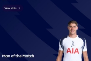 1进球3抢断,范德芬当选热刺2-2伯恩利一役全场最佳