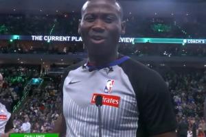 “我们都没看到是谁出界,判罚结果是随便来两个人(any two)中圈跳球。雄鹿对这球提出了挑战。”