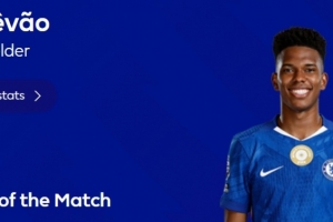传射建功,英超官方:埃斯特旺当选切尔西3-1水晶宫全场最佳球员