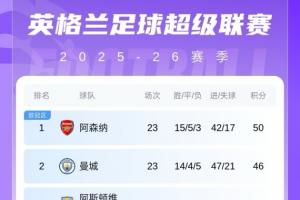 英超积分榜:阿森纳主场首败优势变4分,曼联超越红、蓝军升第四