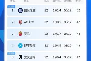 意甲积分榜:国米5分优势领跑!米兰近5轮3平仍第2 尤文紧追前4