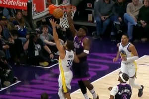GIF-库里突破上篮被爱德华兹大帽