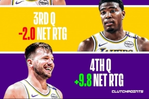 第四节无敌!湖人末节净效率+9.8 其余三节均为负其中第一节-7.7