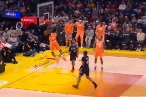 助长士气!小莫布里虚晃突破双手小折叠暴扣后 反击跟进双手再扣