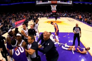 最终判罚:杰明、小波特、曼恩、奥尼尔、阿伦,这五人每人一个技犯!技犯是三比二,所以其中四个罚球抵消,太阳罚一球!罚完之后双方再争球。