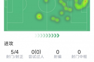 莱万本场数据:1粒进球,5射4正,3次错失良机,1次关键传球