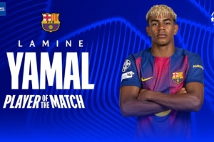 传射建功+6过人成功,亚马尔当选巴萨4-1哥本哈根一役全场最佳