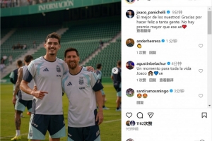 体育资讯11月15日讯 阿根廷新晋国脚帕尼切利更新社媒动态,晒出与梅西的合照。
