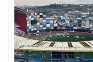 风暴袭击了热门旅游景点,并摧毁了这座标志性体育场,球门后方一侧看台的多色彩板被风彻底损毁,已完全失修。受损产生的碎片散落在球场上,部分屋顶也被摧毁。