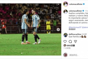 卡洛斯·麦卡利斯特更新社媒动态,晒出两个儿子在国家队的合照,配文:“梦想成真,孩子们茁壮成长,新的挑战也即将到来。重要的是珍视已取得的成就,继续前进,始终享受人生的旅程。”