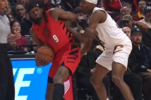 动作略大!汤姆林防守顶到格兰特背部 双方小口角被拉开