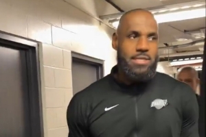 众将球员通道内很兴奋!詹姆斯:8连客在外两周了 终于要回家咯