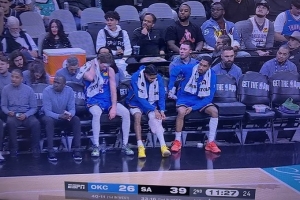又一名场面!雷霆10标准合同球员缺阵 替补席就三名球员等待轮换