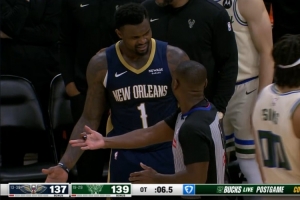 接连犯规!锡安关键一攻运球脱手后撞倒科菲再度被吹进攻犯规