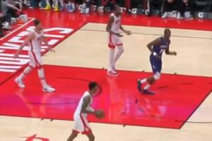 申京被克尼佩尔一步过轻松上篮!杜兰特摊手大喊:你防一下啊😡
