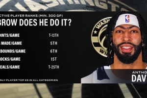 健康浓眉很能打!场均盖帽第1&场均篮板第6 浓眉多项数据现役前列