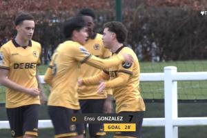 狼队U21再进一球3-1领先,恩索·冈萨雷斯角球后点头球破门