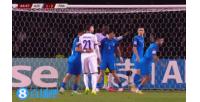 乌龙!图拉姆膝盖磕球,阿塞拜疆门将将球捞进球门,法国3-1领先