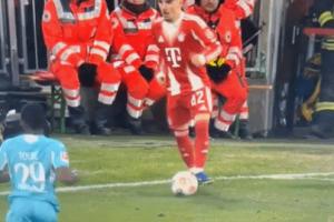 体育资讯2月10日讯 拜仁在本轮德甲5-1大胜霍芬海姆,迪亚斯戴帽并独造5球、凯恩点射双响。但最令人印象深刻的或许还是小将卡尔在原地踩单车将皮球碰出边线。