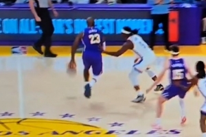 湖媒Lakers Daily晒出多特防守詹姆斯的一个回合,手全场搭在詹姆斯的腰背部,多次拉拽球衣。