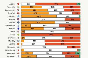 从整体来看,49%的支出流向了21至24岁年龄段的球员,这是该年龄段连续第八个赛季占据转会费支出的最大份额。