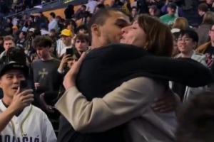 目测这有多高?文班亚马赛后和母亲拥抱致意 ❤️