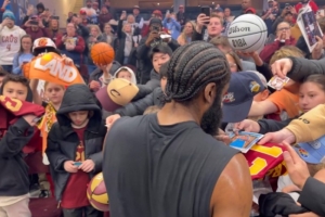 人气超高!哈登主场首秀前 为众多克利夫兰的小球迷耐心签名
