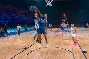 GIF-王鹤棣上篮惨遭血帽!