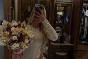 帕尔默女友霍尔德社媒晒出对镜自拍,照片中她手捧鲜花,而帕尔默则出现在镜子中。