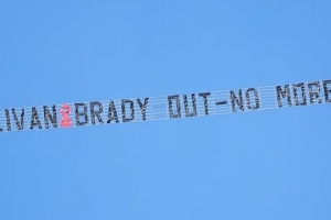 体育资讯2月14日讯 《邮报》报道,由于对西汉姆老板大卫·沙利文和卡伦·布拉迪长达15年的管理方式极其不满,愤怒的球迷选择在电视直播期间租用飞机,在球场上空拉起横幅,直接打出“沙利文与布拉迪走人,不要再废话了”的标语。